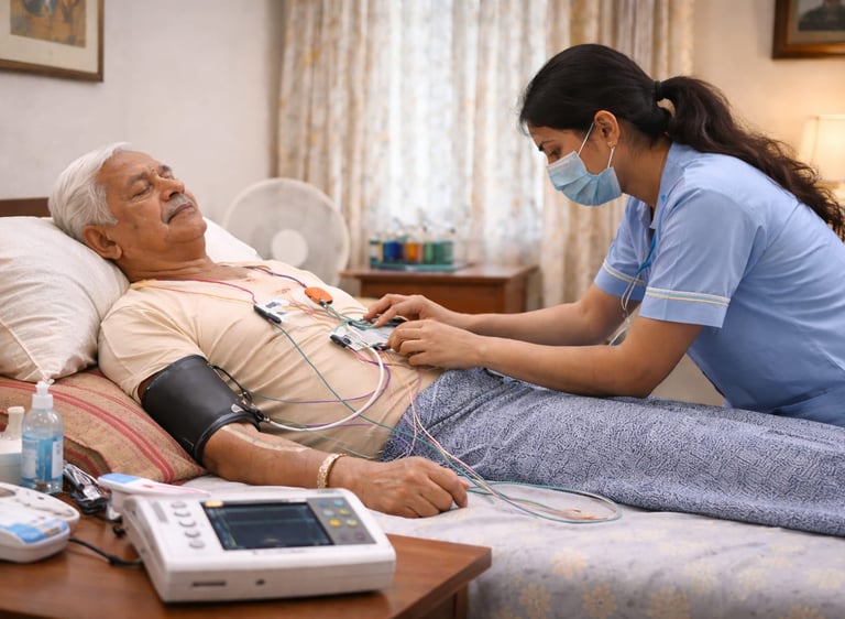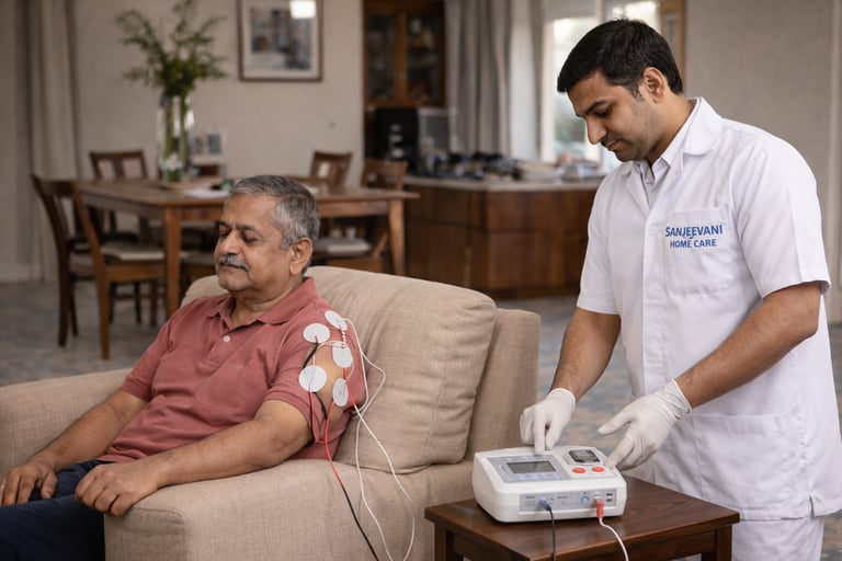 Convenient ECG testing performed by trained professionals at home. Quick monitoring and timely reports for heart health assessment.